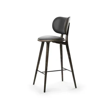 Cadeira bar baixa Mater High Stool Backrest da Mater, criada pelo estúdio de design Space Copenhagen. Este elegante banco de bar oferece grande conforto com o seu generoso encosto arredondado em couro macio e durável.