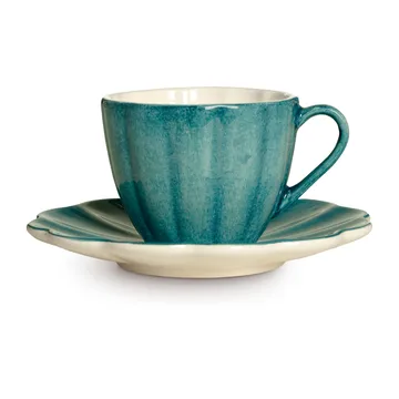 Chávena com pires Oyster 25 cl da Mateus adiciona um toque encantador e rústico à sua mesa. As formas onduladas da chávena e do pires são inspiradas em conchas, ostras e nas ondas do mar. Combine com outros produtos da série Oyster da Mateus.