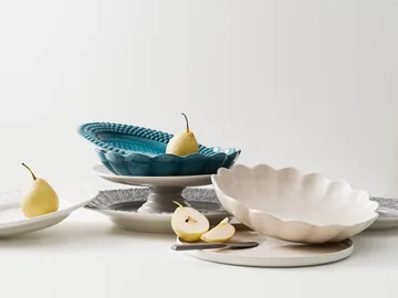 Tigela Oyster Ø24 cm da Mateus é uma tigela em cerâmica feita e pintada à mão, inspirada nas ondas do mar e nas ostras. A forma suave e orgânica e a superfície vidrada com traços de pincel visíveis tornam cada peça única e cheia de carácter. Perfeita para servir saladas, frutas ou como um belo elemento de decoração na mesa — sozinha ou em combinação com outras peças da série Oyster. A tigela convida a apresentações de mesa personalizadas e oferece uma sensação quente e viva em cada refeição.