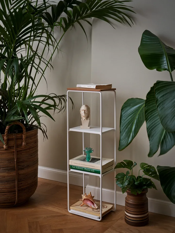 A prateleira Mixrack Floor Shelf L de 26x19x82,2 cm da Maze é feita de metal revestido a pó com topo em madeira. A prateleira Mixrack Floor Shelf é uma evolução dos produtos de design anteriores do designer Tapio Anttila para a Maze: Mixrack Shoe Shelf e Mixrack Storage, e por isso muito do design parece familiar. Desde 1994, Tapio Anttila tem espalhado bom design pela Finlândia e pelo mundo. Uma prateleira que se adapta perfeitamente à maioria das casas, um futuro clássico do design.