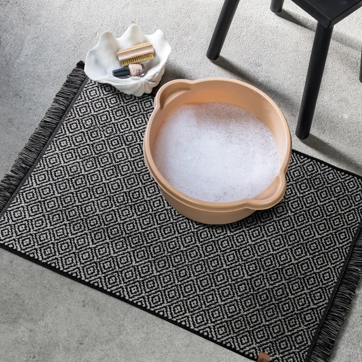 Morocco tapete para casa de banho 50x80 cm da dinamarquesa Mette Ditmer é fabricado em algodão certificado pela OEKO-TEX com um padrão que lembra hamam. Combine com as toalhas da mesma série para uma sensação coesa na casa de banho.