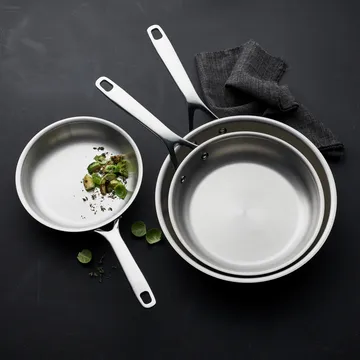 A Frigideira 79NORD é uma frigideira de aço da Morsø com um acabamento acetinado mate e uma espessura de fundo de 6,1 mm. O cabo arredondado torna a frigideira confortável de usar e as bordas altas facilitam a virada dos alimentos.