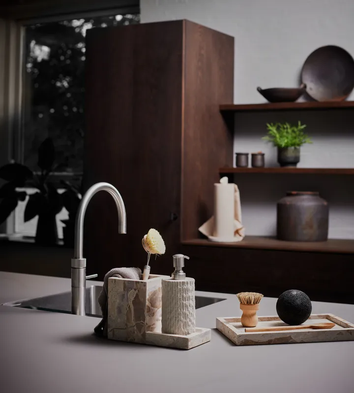 Tabuleiro decorativo Vita 20x30 cm da Muubs é fabricado em mármore e faz parte de uma série de acessórios de cozinha extraordinários que enaltecem a decoração com uma peça forte e bonita da natureza. As pequenas esculturas de mármore da série Vita irradiam uma elegância excepcional e refinamento, e adicionam uma beleza robusta e intemporal a qualquer cozinha. A variação natural nas cores e padrões torna cada produto Vita único e cria um belo contraste com outros materiais na tua cozinha. O tabuleiro Vita adiciona um toque estético e luxuoso à tua decoração. Usa o tabuleiro para apresentar queijo, frutas ou aperitivos de forma elegante, ou decora o tabuleiro com especiarias e ervas na cozinha.