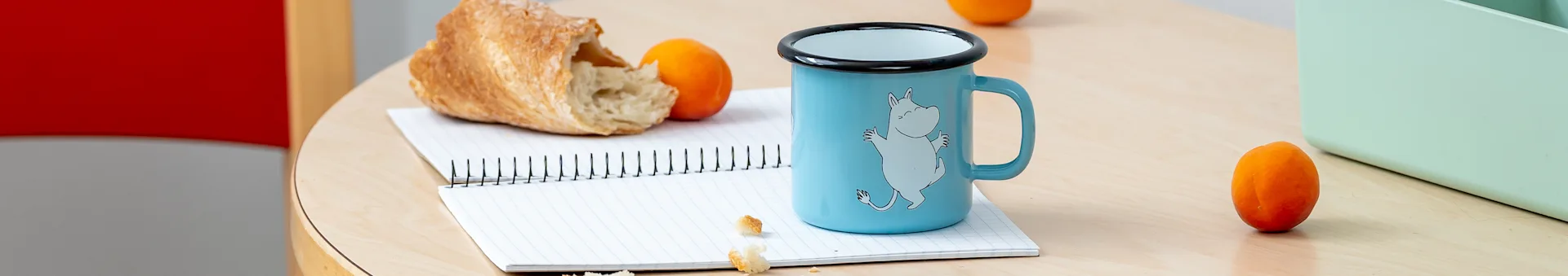 Os produtos Moomin e as canecas Moomin tornaram-se coleccionáveis muito populares em todo o mundo, e as adoradas canecas de esmalte são feitas por Muurla. Cada caneca de esmalte impressa é feita à mão. Isto significa que pode haver ligeiras variações entre canecas, provando que as canecas de esmalte são cuidadosamente feitas por artesãos habilidosos. As canecas de esmalte também têm um toque retro, e fazem um belo detalhe decorativo no armário da cozinha e na mesa.