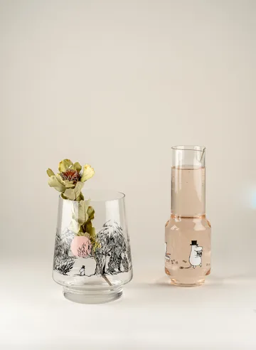 Jarro Harvest Time 1,2 litros da marca finlandesa Muurla é um jarro de vidro com um desenho inspirado nas adoradas histórias dos Mumin de Tove Jansson. O jarro tem um bico prático para verter e é ideal tanto para água como para sumo e refresco.