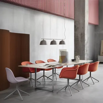70/70 mesa de jantar 295x108 cm da Muuto combina formas geométricas e estética escandinava. A superfície quente em madeira laminada colada funde-se com a elegante estrutura de alumínio da base de 70x70 cm. O generoso tamanho de 295x108 cm oferece amplo espaço para jantares, trabalho ou projectos criativos. Uma mistura perfeita de funcionalidade e design de alta qualidade para a sua casa.