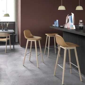 A Banqueta com bar Fiber counter 65 cm da Muuto foi criada por Iskos-Berlin com um inovador material de concha feito de plástico reciclável e fibras de madeira. A banqueta destaca-se pelo seu conforto e compacidade. Fabricada em duas alturas, oferece uma ampla gama de cores e opções com ou sem estofamento e encosto. Perfeita para todo o tipo de ambientes, é totalmente reciclável e está disponível com diferentes estruturas de pernas. Uma escolha sustentável para a sua casa ou local de trabalho.