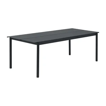 O Linear steel table bord 220x90 cm da Muuto é uma grande mesa de jardim em aço mate, com pintura a pó, desenhada por Thomas Bentzen. Com seu design minimalista, a mesa oferece uma impressão moderna e elegante. Embora o Linear tenha sido criado para uso ao ar livre, ele também é perfeitamente adequado para uso interno se você estiver procurando uma mesa de jantar com um estilo simples e industrial. Considere combinar com uma das cadeiras ou bancos da mesma série.