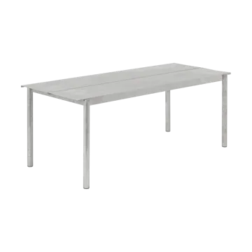 A mesa de aço Linear de 200 cm foi desenhada por Thomas Bentzen para Muuto e é uma mesa de jantar moderna, mas ao mesmo tempo atemporal, para uso tanto interno quanto externo. A mesa é fabricada na Suécia e pintada com um pó de cor mate e resistente às intempéries. A expressão estética limpa ganha um carácter distinto graças aos detalhes subtis no encontro dos diferentes componentes do móvel. Considere combinar a mesa elegante com a versão mais longa do banco externo na série Linear, que é projetada para ser guardada debaixo da mesa quando não está em uso.