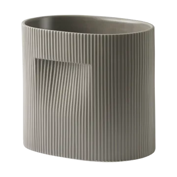 O vaso Ridge 24 cm da Muuto é fabricado em grés com uma superfície mate e um interior vidrado que oferece uma expressão sólida e harmoniosa. A borda subtilmente estriada e as alças discretas tornam-no tanto elegante como prático. Perfeito para plantas menores, ervas ou suculentas, e serve igualmente bem em um peitoril de janela como sobre uma mesa ou uma prateleira. Um detalhe atemporal que eleva o ambiente e cria um equilíbrio natural na decoração.