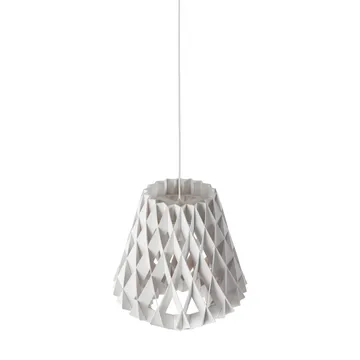 Pilke Signature candeeiro suspenso Ø50 cm de Pilke é um grande candeeiro de tecto em bétula que é fabricado à mão na Finlândia sem parafusos ou cola. A forma geométrica do candeeiro e o padrão semelhante a diamantes permitem que a luz brilhe lindamente através das ranhuras. O tamanho da cúpula do candeeiro faz com que se torne um belo ponto focal na sala e é igualmente adequado tanto para a sala de estar como para o escritório.