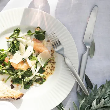 O conjunto de Talheres Bergen mate de Robert Welch consiste em talheres bem equilibrados com um design que se estreita no meio, o que lhes confere uma silhueta elegante. Isso, combinado com o acabamento acetinado convidativo, dá à mesa uma sensação extra de elegância. Os talheres foscos são feitos de aço inoxidável da mais alta qualidade, com lâminas de facas feitas de aço especialmente endurecido que os torna particularmente afiados. Escolha entre diferentes conjuntos de talheres dependendo do que melhor se adapta a você e aos seus convidados. O conjunto de talheres é entregue a você em uma bela embalagem de presente.