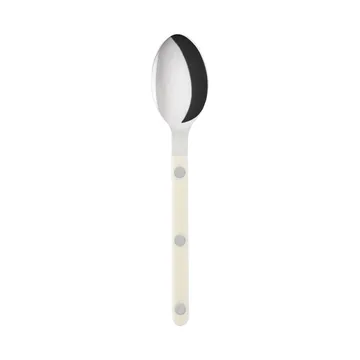 Colher de chá brilhante Bistrot do marca francesa Sabre Paris é um talher que parece tanto lúdico quanto tradicional. O talher é feito de aço inoxidável com cabos acrílicos de alta qualidade na própria fábrica da Sabre Paris na França. Escolha entre várias cores diferentes dos cabos sólidos. Complete com outros talheres como garfo de jantar e colher de sopa da série Bistrot.