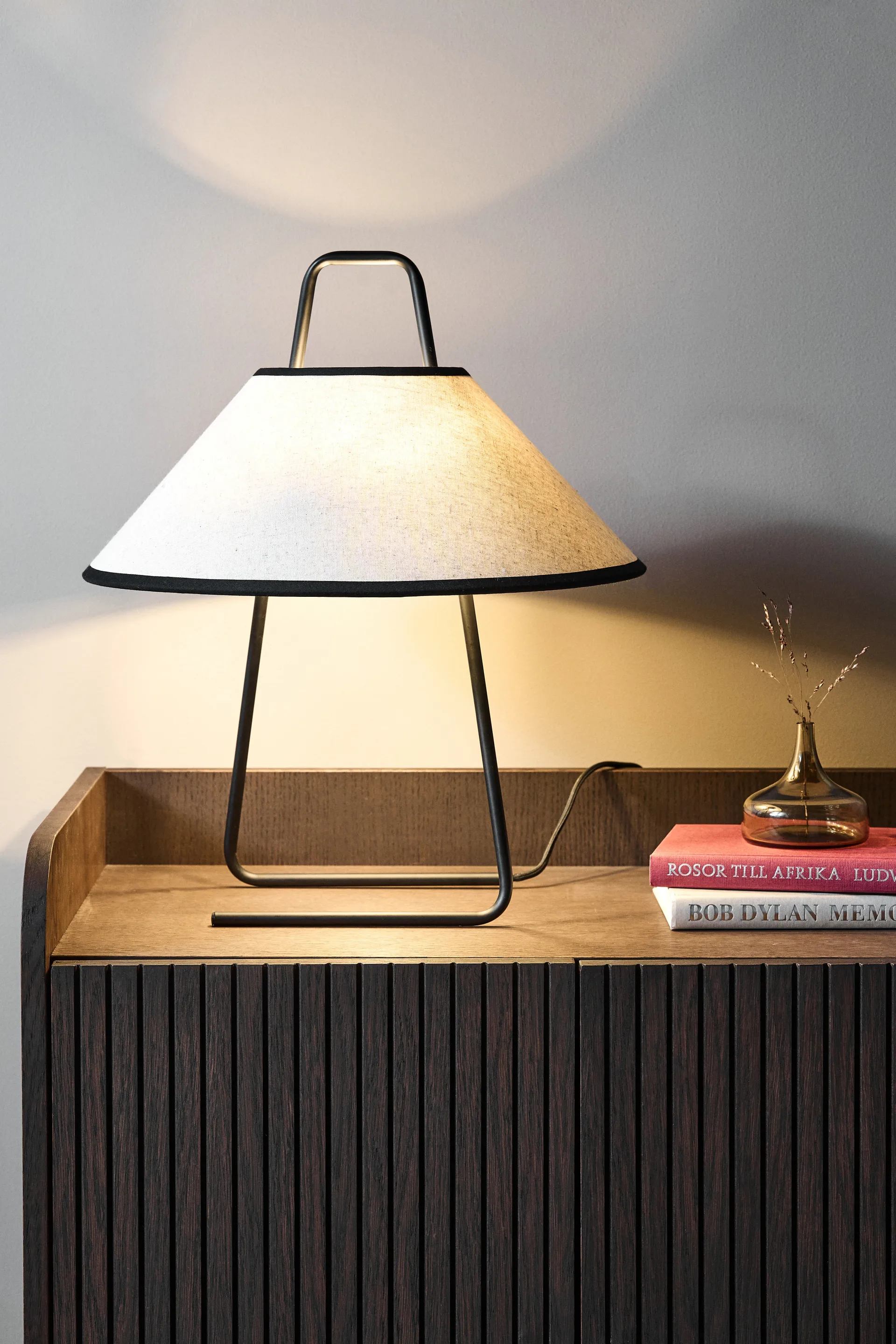 Moss Candeeiro de mesa 43 cm da Scandi Living tem uma base metálica que sustenta elegantemente um abat-jour em linho com bainhas costuradas. O design é inspirado no estilo retro, em combinação harmoniosa com o expressionismo japandi e na simplicidade do contraste. A lâmpada difunde uma luz quente e suave que cria uma atmosfera única e acolhedora. Perfeito como iluminação ambiente na sala de estar, no quarto ou no hall, e um detalhe intemporal que valoriza a decoração da divisão.