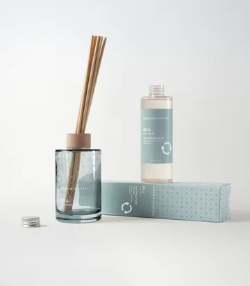 Varas difusoras de aroma Øy da Skandinavisk tem uma fragrância fresca de maçãs silvestres crocantes, rosas selvagens, musgo e folhas verdes. Além de perfumar a sua casa, a elegante garrafa de vidro torna-se um belo detalhe de decoração. Inclui um total de oito varas difusoras de aroma. Quanto mais varas você colocar na garrafa, mais fragrância será liberada.