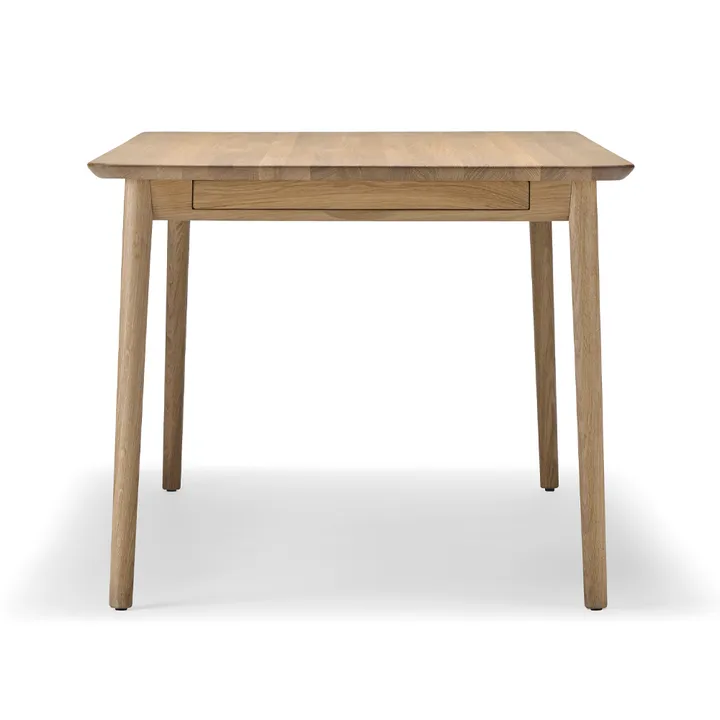 Mesa Prima Vista da Stolab é uma mesa bem feita e atemporal em madeira maciça. A Mesa Prima Vista é uma mesa que cresce com a tarefa e onde você pode rapidamente arranjar um espaço extra para uma panela ou para mais convidados. A mesa nos comprimentos 120 e 180 vem com uma extensão de tabela e uma gaveta extensível com uma área de ganchos. A maior mesa, com o comprimento de 210, tem um tampo de mesa fixo e vem sem extensões.