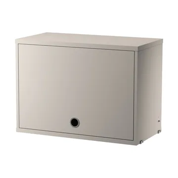 Gabinete String 58 cm abre-se facilmente para cima com a ajuda de amortecedores a gás. O armário é compatível com todos os painéis de arame e plexiglass de 30 cm de profundidade do String® System. Uma prateleira interna ajustável torna o armário flexível para diferentes tipos de armazenamento. O gabinete tem uma porta que se abre facilmente para cima com a ajuda de amortecedores a gás. O Gabinete String é perfeito para usar para o armazenamento da sua cozinha ou como um armário de cima se quiser criar uma solução de armazenamento para roupas.