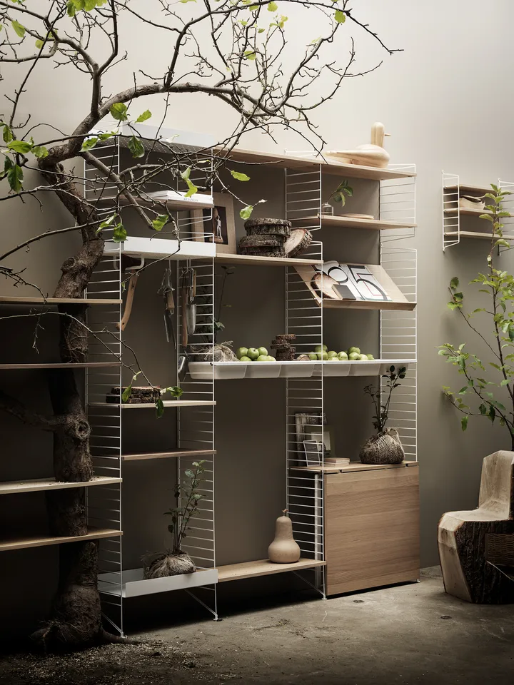 Prateleira String da String, desenhada por Nisse Strinning, faz parte do flexível String System. Oferece uma variedade de combinações com os seus icónicos painéis de arame. Personalize a prateleira conforme necessário e crie uma solução de armazenamento pessoal.