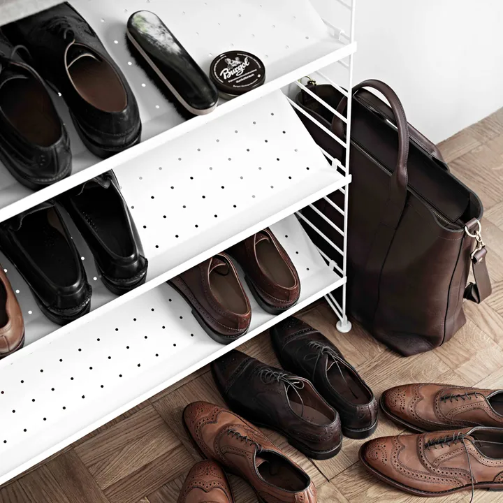 Sapateira metálica String foi desenhada por Anna von Schewen e Björn Dahlström. Esta sapateira combina funcionalidade e adaptabilidade para se adequar a qualquer casa. É fabricada em metal robusto e pode ser facilmente integrada nos seus sistemas String existentes. Perfeita para organizar e manter os sapatos arrumados. Secções ajustáveis permitem-lhe adaptar a prateleira conforme necessário, enquanto a construção leve a torna fácil de montar e deslocar. Uma excelente solução tanto para espaços pequenos como grandes.