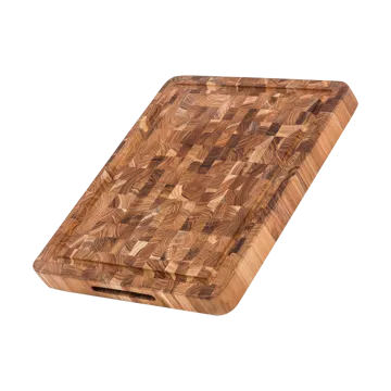 Butcher Block Carving tábua de cortar 313 da Teakhaus é uma tábua de corte em topo de grão robusta que adora tanto a cozinha do dia a dia como os churrascos. Com pega, canal para sucos e design reversível, é prática e delicada com as facas. Feita de madeira certificada FSC para longa durabilidade. Lavar apenas à mão. Um companheiro intemporal na cozinha, que transmite confiança e convida ao uso.