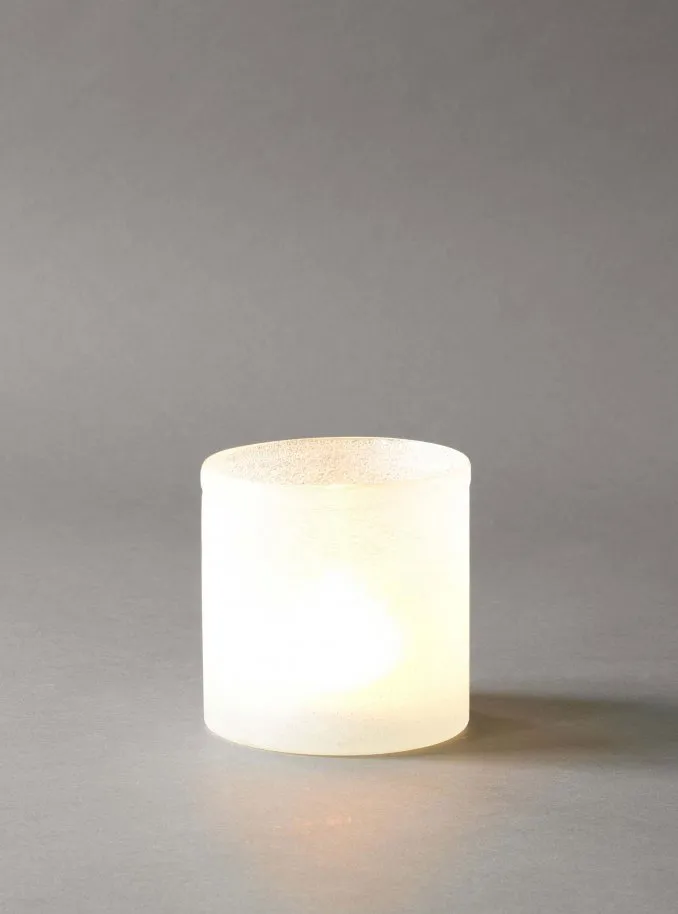 Lanterna Frost M da Tell Me More é uma lanterna artesanal com um belo exterior fosco que captura a luz de forma suave e onírica. O vidro soprado à boca foi rolado em soda calcinada a alta temperatura, criando uma superfície única — nenhuma lanterna é igual à outra. Use-a como um elemento de ambiente na mesa de centro, na janela ou em grupo para um brilho mais quente e pessoal em casa. Um detalhe intemporal que valoriza qualquer divisão.