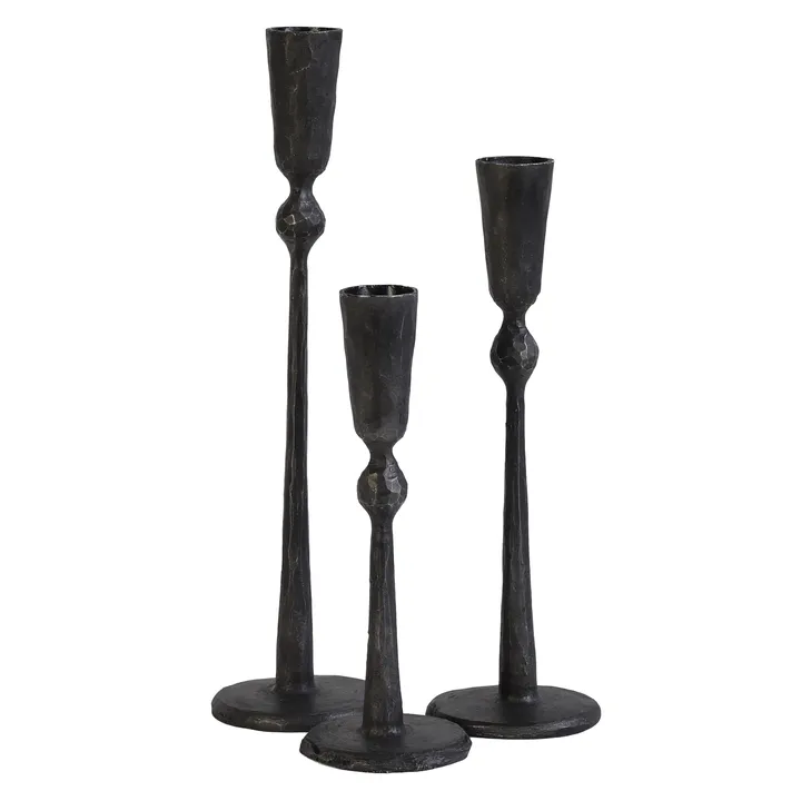 Suporte de velas Boule preto da Tell Me More é um castiçal artesanal em ferro, concebido segundo o artesanato tradicional da Índia. Cada peça é forjada à mão e adquire uma carácter único que a torna ao mesmo tempo pessoal e intemporal em casa. O Boule é compatível com velas de haste e está disponível em três tamanhos, o que o torna versátil para colocar na mesa de jantar, peitoril da janela ou mesa lateral. A sensação robusta e o acabamento cuidadoso fazem do Boule um belo detalhe estruturante na sua decoração.