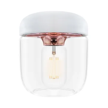 O abajur branco Acorn da marca dinamarquesa Umage foi desenhado pelo designer Jacob Rudbeck. Acorn tem um design elegante e moderno, com uma forma inspirada em uma bolota. O abajur é composto por três partes: uma base de silicone macio, uma concha externa de vidro e um núcleo distinto de alumínio lacado. Os três componentes juntos criam uma pequena mas expressiva fonte de luz que pode ser pendurada sozinha ou em um grupo maior! Escolha entre diferentes cores.