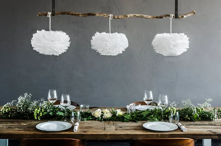 O Candeeiro Eos foi desenhado por Søren Ravn Christensen para a marca dinamarquesa Umage. O candeeiro é feito de penas de ganso brancas e papel e é entregue numa caixa plana com instruções de montagem simples. O candeeiro adapta-se perfeitamente à maioria dos quartos e emite uma luz quente e acolhedora quando está aceso! Como o suporte ou suspensão são comprados separadamente, o candeeiro de penas Eos pode ser usado tanto como candeeiro de teto, de chão ou de mesa.