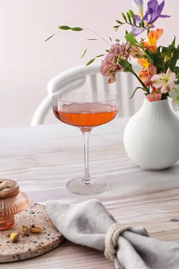 Rose Garden taça de champagne 12 cl 4 unidades da Villeroy & Boch são copos de cristal com um design romântico, adequados para bebidas festivas como champagne, prosecco ou cocktails. A forma suave da taça e o vidro claro refletem a luz de forma bonita.