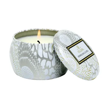 Vela perfumada Japonica Mini Tin 25 horas da Voluspa é o presente perfeito para ti ou para alguém de quem gostas muito. A fragrância desta vela é uma mistura única de vinho espumante, grapefruit, carvalho e pétalas de rosa, proporcionando um aroma fresco e revigorante que faz com que a casa se sinta luxuosa. A vela vem numa pequena lata com tampa, o que a torna fácil de levar em viagens ou guardar em casa.