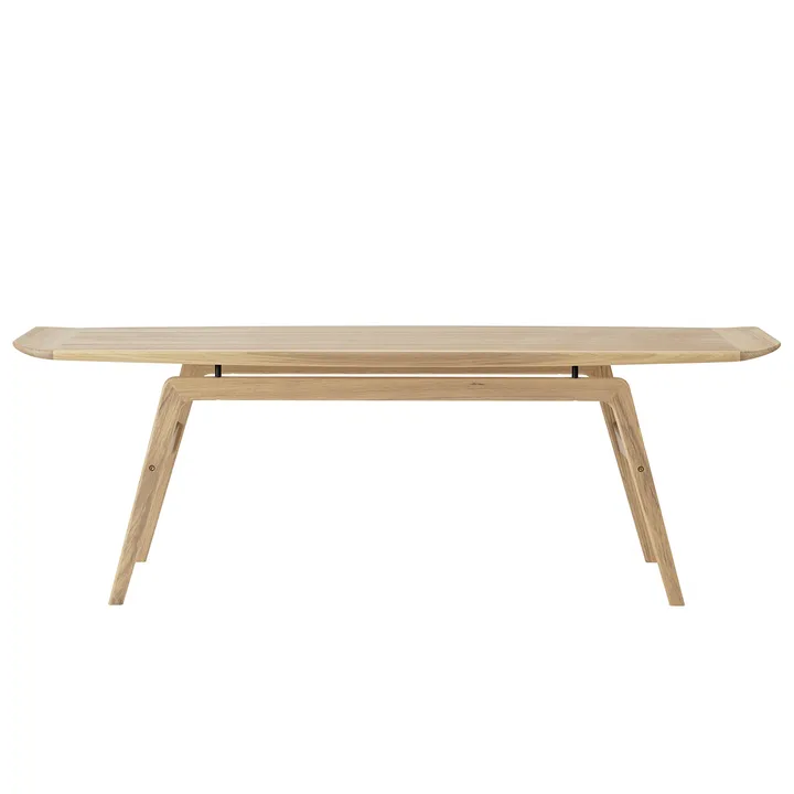 A Mesa de centro Surfboard 152x52 cm da marca dinamarquesa Warm Nordic foi originalmente desenhada em 1959 pelo renomado designer de móveis dinamarquês Arne Hovmand Olsen. Como o nome sugere, a clássica mesa de madeira foi inspirada na forma de uma prancha de surf e suas laterais elevadas conferem à mesa uma silhueta muito elegante. O comprimento generoso da mesa é perfeito para acomodar convidados extras no sofá. Escolha entre diferentes belos tipos de madeira.