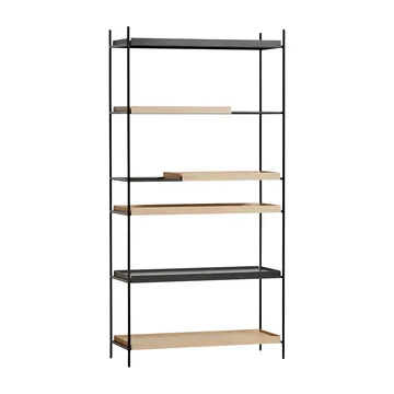 Prateleira carvalho alta Tray, 100x201 cm do produtor dinamarquês Woud é uma estante aberta com seis prateleiras em diferentes tamanhos, desenhada por Hanne Willmann. A estante alta possui uma simetria estética com linhas retas e foi desenhada para se adequar a você. Escolha sua combinação preferida posicionando as bandejas em um dos diferentes níveis da estrutura. A estante tem pequenas prateleiras que permitem que objetos mais altos, como um belo vaso, possam ser exibidos.