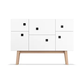 Armário Peep C2 da Zweed foi desenhado por Håkan Johansson e caracteriza-se pelos seus puxadores colocados de forma única, que permitem uma visão do interior do armário. A subtil diferença criada por esses puxadores é equilibrada pelas linhas simples do móvel. As portas têm amortecedores integrados para um fecho suave e silencioso. O modelo está disponível em várias variantes e opções de cor, bem como com a escolha de um suporte de pés, tornando fácil encontrar a solução que melhor responde às suas necessidades.